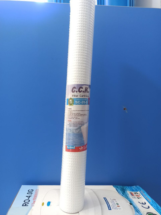 فیلتر پلی پروپیلن اسلیم سی سی کا CCK که قابلیت حذف آلاینده های موجود در آب تا اندازه 5 میکرون را دارد. یعنی از این فیلتر میتوان برای حذف گل و لای، شن و ماسه و آلاینده های درشت موجود در آب استفاده کرد. فیلتر های اسلیم معمولا در اولین مرحله از دستگاه های تصفیه آب نیمه صنعتی نصب میشوند. از آنجایی که این فیلتر ها کارتریجی هستند ، در هوزینگ دستگاه های تصفیه آب نیمه صنعتی هوزینگی نصب خواهند شد. فیلتر های پلی پروپیلن یا به اختصار پ پ اسلیم به طور کلی عمری بین 3 تا 6 ماه را دارند. این فیلتر ها 20 اینچ و 5 میکرون هستند. نوع کارکرد این فیلتر ها و به عبارتی ساختار فیلتر پلی پروپیلن اسلیم سی سی کا به این صورت که است که وقتی آب وارد هوزینگ این کارتریج میشود، ابتدا در لایه های بیرونی فیلتر، ذرات درشت تر آب تصفیه میشوند و هر چه به لایه های درونی تر فیلتر نزدیک میشویم، ذرات ریز تر آب از آن حذف میشوند